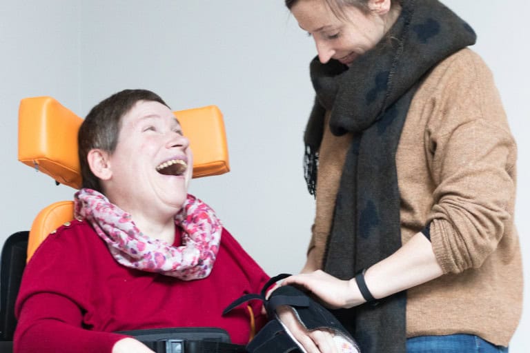Heder kijkt en luistert goed naar mensen met een motorische en/of verstandelijke beperking, een neuromusculaire aandoening of een niet aangeboren hersenletsel.